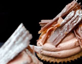 - Sprinkle with shaved chocolate (you can create this effect but using a potato peeler on the side of a chocolate bar) and a dusting of icing sugar.